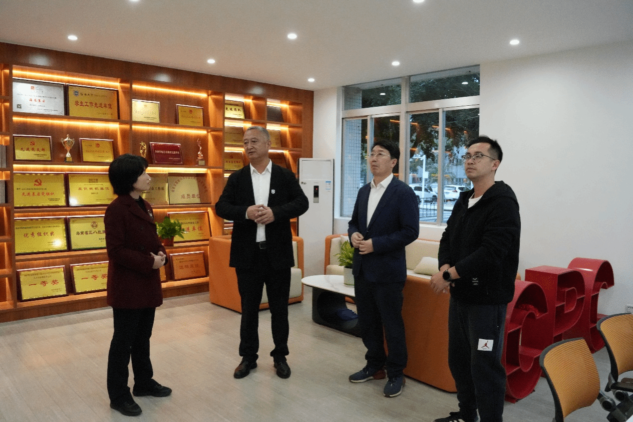 调研中,李湖认真听取学院落实全面从严治党主体责任及学院整体工作推进情况的汇报,实地走访学院党员之家、未来传播实验室、中国南海文物国际传播研究院、海南省知识服务中心及海南省华侨华人研究院,察看学院党建阵地标准化建设成效,了解数字传播专业教学开展、特色文化研究平台搭建运转等各项重点工作推进详情。李湖对学院各项工作取得的扎实成效予以充分肯定,他指出,学院自成立以来,精准锚定特色发展方向,始终以党建为根本引领,扎实推动党建工作与人才培养、科研创作、学科建设深度融合、同频共进;教学改革中主动融入数字技术赋能,切实提升学生实践能力与创新思维,人才培养质量稳步提升;同时立足海南独特区位优势,紧扣国际传播核心定位,在南海文化与侨乡文化研究领域成果丰硕,既夯实了特色文化研究根基,更切实服务国家重大战略落地,为地方文化建设高质量发展积极贡献力量。