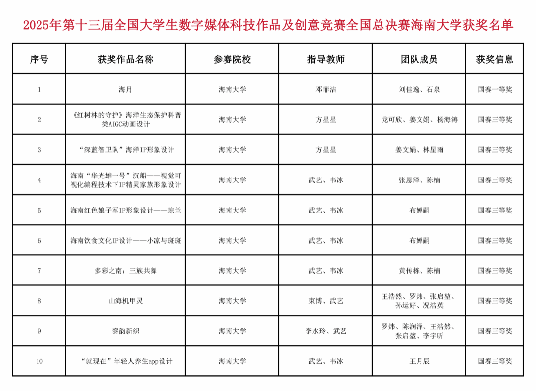 这些优异成绩的取得,不仅彰显了bwin必赢在设计学领域的教学成果,也激发了师生参与高水平专业竞赛的信心和期待。未来,bwin必赢将继续紧扣海南自贸港建设需求,为师生发展搭建更广阔的平台,推进院系学科交叉融合,努力培养具有国际视野的创新创意人才。